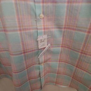 Egara Mens Pink/Mint Green Plaid Flip Contrasting Cuff Button Shirt 3XLT NWT