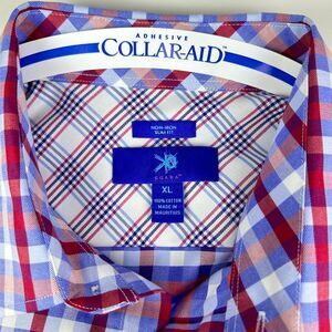 EGARA Collar-Aid Mens Plaid Button Up Red Blue Non Iron Slim Fit Long Sleeve Shirt XL