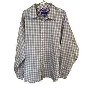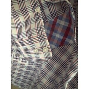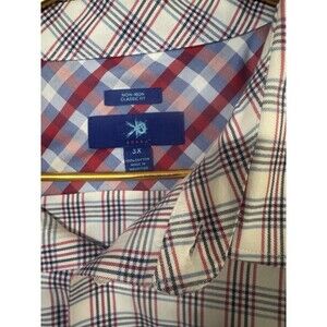 Egara Mens Red White Blue w/checkered Cuff Design Dress Shirt 3 XL Non-Iron