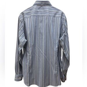 Egara Men’s Slim Fit Blue Tan White Striped Dress Shirt Floral Cuff/Neckline XL