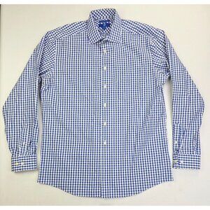 Egara Non Iron Modern Fit Size XLT 17-17.5 Mens Blue White Check Spread Collar