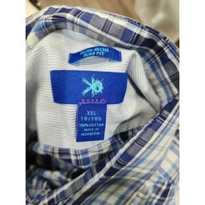 Egara Non Iron Slim Fit Button Up Shirt XXL Blue Checkered Long Sleeves Collared
