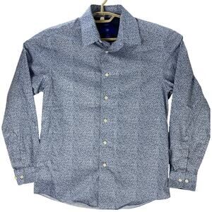 Egara Shirt Men Size M Blue Ditsy Floral Long Sleeve 100% Cotton Non Iron Preppy