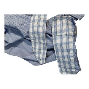 Egara Men’s Blue Striped Button Down Dress Shirt 16/ 16.5 XXL 100% Cotton Plaid