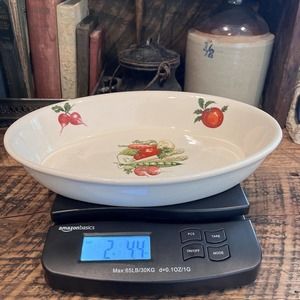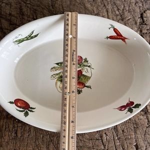 Egersund Vintage MCM Scandinavian Vegetable Baking Dish Made in Norway 12.5". Beautiful piece. Nice weight. Measures 12.5 inches long and 8.75 inches wide.