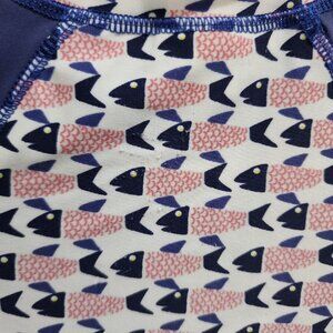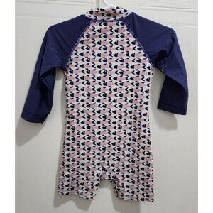 Egg By Susan Lazar Baby One Piece Zip Front LS Rashguard Red White Blue Fish 12M