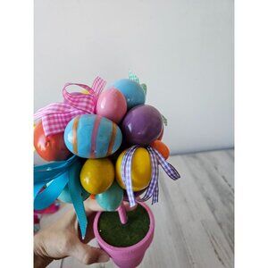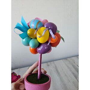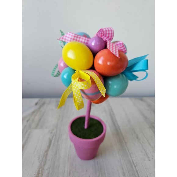 Egg Easter flower pot spring decor ribbons pink pastel unique large