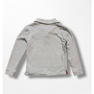 White with navy stripes and red accents polo shirt from Egg in kids’ size 8. Long sleeves, chest pocket, made from an incredibly soft blend of 95% cotton/5% spandex. In great pre-owned condition: no stains or tears, light wash wear only.