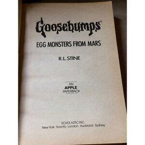This first edition of "Egg Monsters from Mars" is a highly sought-after Goosebumps book. Perfect for collectors or fans of R.L. Stine's thrilling series. Add this rare find to your collection today and relive the spine-tingling nostalgia.