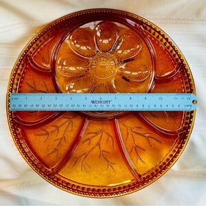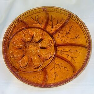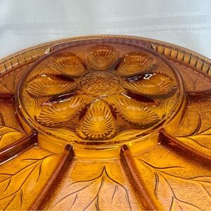 Egg Plate Relish Plate Round Amber Pebble Leaf by Indiana Glass VTG Discontinued