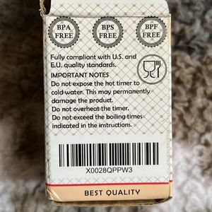 Egg Timer Pro. Hard, soft and medium boiled egg timer. Put in water with the eggs and wait for the color changes to see doneness. Slight crack at bottom but works fine.