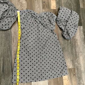 Eggie Delilah Gray Polka Dot Off Shoulder Puff Sleeve Mini Dress Wool Blend S