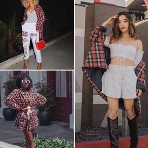 Eggie Spring Drop Checkered Plaid Flannel 90's Grunge Vibes Snap Button Closure Collared Neckline Side Pockets Quilted Lined Warm Comfy Cozy Boho VSCO Unisex Streetwear Shacket Dad Shirt Jacket