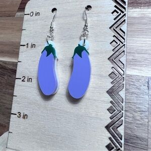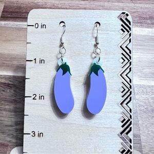 Handmade by me acrylic eggplant laser cut earrings with sterling silver ear wires. Super lightweight