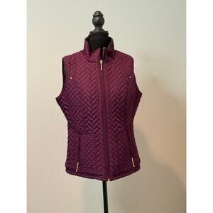 Stay cozy and stylish with this beautiful eggplant-colored puffer vest! Perfect for layering, this vest features a full zipper closure to keep you snug on chilly days.
