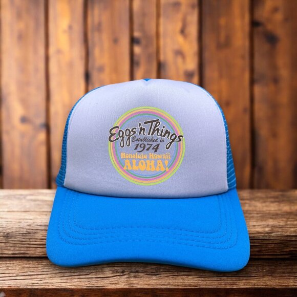 Eggs 'N Things 1974 Hawaii Aloha Mens Trucker Hat Blue Surf Baseball Cap