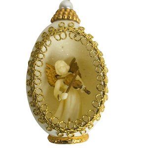 Eggshell Christmas Ornaments Musical Angels Gold Trim Pearl Set of 6 Vintage