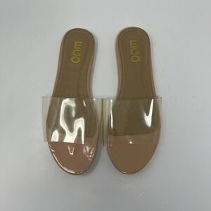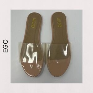 Ego Kerrie Clear Perspex Mule Slip On Sandals. Women's size 7. Clear sandal tops with beige bottoms. Preowned condition with minimal signs of wear.