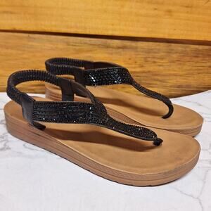 Ego Rhinestone studded thong sandals shiny metallic beaded flip flop yara 7.5