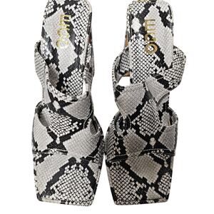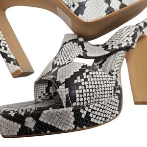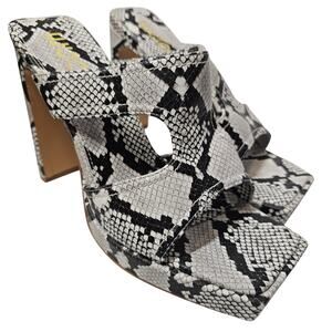 Ego Snakeskin Print Black and white Sandal Square Toe High Heel Size 9 US