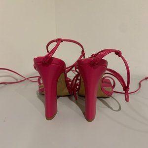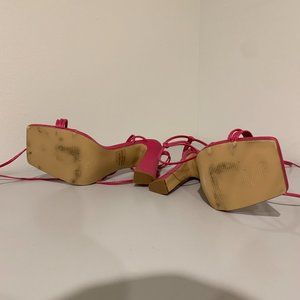 Ego x Maura Pink Strappy Lace Up Square Toe Block Heel