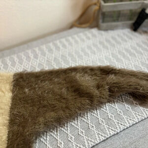 Egoist Sweater Multi-material with Pedal like design, stripes, mohair look. Likely Size Small. Korean brand based on the Korean tags. Brown and cream.