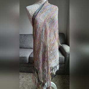 Vibrant multicolor striped sheer scarf. Perfect for adding a pop of color.
