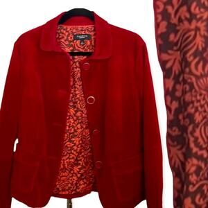 Egs By Eloges Navy Floral Body Silver Velvet Sleeve Bomber Jacket Size Medium