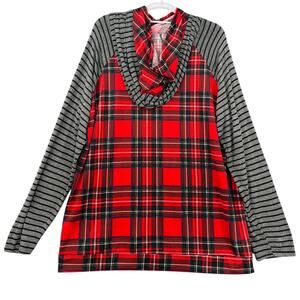 Egs California Red Plaid Striped Long Sleeves Drawstring Hood Womens Hoodie 1XL