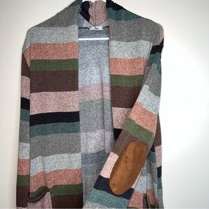 Egs Multi Colored Striped Suede Elbow Patch Open Cardigan with Pockets Size S/M