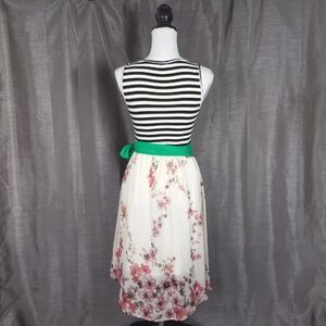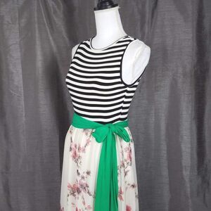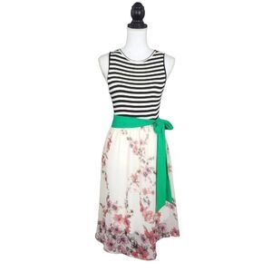 Egs Striped Floral Mix Sleeveless Belted Fit & Flare Dress Size Medium