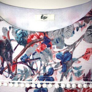 Egy California Floral Lace Detail Short Sleeve Shift Midi Dress Medium