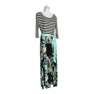 Egy Womens 1XL Stripe Floral Maxi Swing Dress