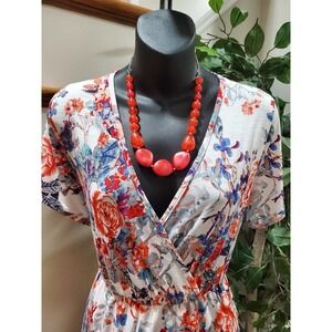 Egy Women's White Floral Polyester V-Neck Short Sleeve Long Maxi Dress Size XL.