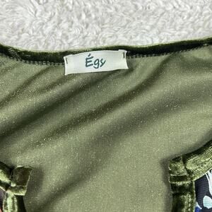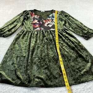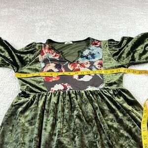Egy green velvet and floral print babydoll dress, size Large