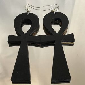 Egyptian Ankh Cross Wood Engraved Symbols of Life, 3x3; lightweight will accent the perfect outfit.