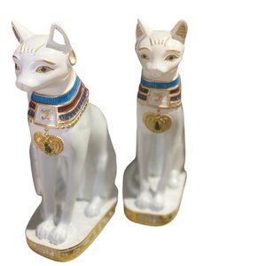 Egyptian Cat Bastet Goddess White Statue Figurine 8"