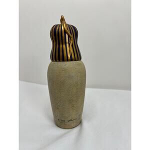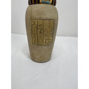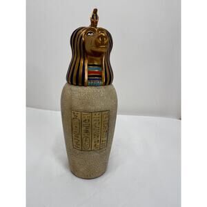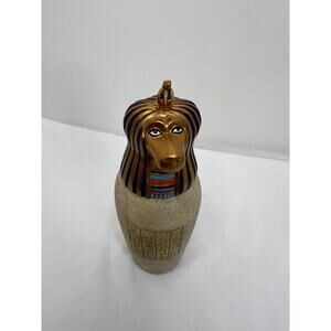 The Egyptian God Anubis Figurine Sculpture Canopic Jar is a beautifully crafted decorative collectible that pays homage to the ancient Egyptian god Anubis. This intricately designed piece serves as a unique addition to any collection or as a standalone sculpture to enhance the decor of a space. With its detailed craftsmanship and historical significance, this figurine serves as a reminder of the rich cultural heritage and beliefs of ancient Egypt.