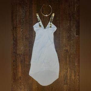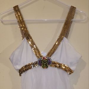 Brand: California Costume Collections, Size: Teen OS but Fits like a Small, Color: White and Gold, Material: 100% Polyester, Condition: Good, Worn once but can use a wash. Only comes with Dress, missing pieces.