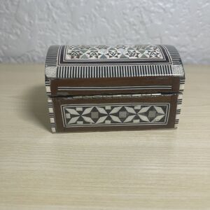 Egyptian Inlaid Mother of Pearl Mosaic Beechwood 4” Hinged Trinket Box Lined