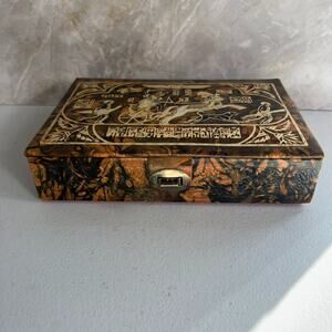 Egyptian Leather Jewelry Box Handmade Chariot Design Trinket Box Embossed