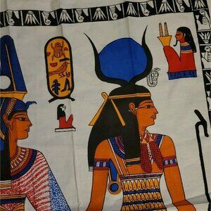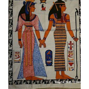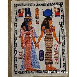 Egyptian Linen Cotton Tea Towel Isis Queen Nefertari Colorful" 29" x 19" Vintage