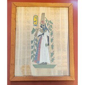 Egyptian Papyrus Painting Handmade Framed Wall Art Hieroglyph Queen Ahmose Nefer