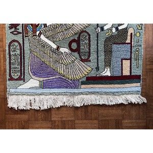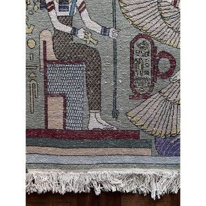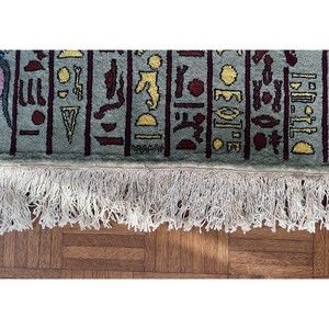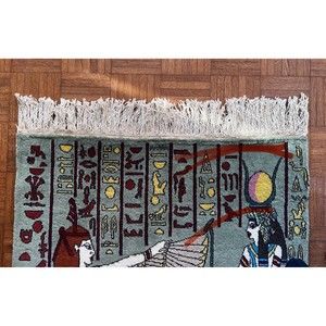 Add a touch of Egyptian culture to your home decor with this beautiful rectangular area rug. Featuring a stunning pharaoh and hieroglyphic theme, this rug is sure to be a conversation starter. Measuring 42 inches in length and 34.5 inches in height, including fringe, this rug is perfect for any room in your