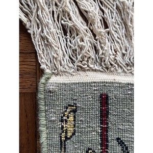 The rug is pre-owned and was hung as a wall hanging, never used on floor. excellent pre owned condition. Photographs are part of the description, PC detailed photos of both the front and the back of this piece. Feel free to ask any questions happy to send more photos upon request. **ships rolled in carton.