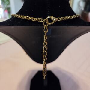 Stunning bib style necklace. Vibrant glass gems and seed beads. Gold Tone Rope Chain with adjustable extra chain.