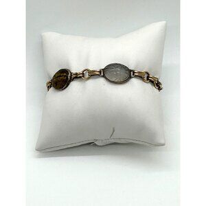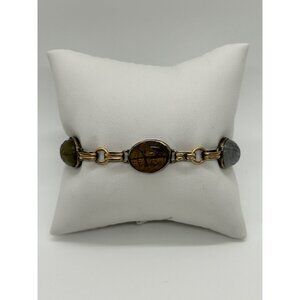 This pre-owned estate bracelet is in good condition; however, like most vintage jewelry, it shows some surface wear, with patina and wear consistent with age. There are gaps and imperfections in the chain and a burn mark on the back of one of the stones. This does not detract from its overall beauty. We encourage you to carefully examine the provided photos to appreciate the item’s details fully. To ensure your complete satisfaction before making a purchase, please use the Zoom tool.