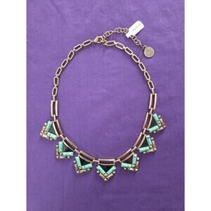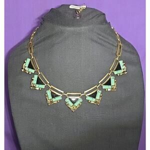 Egyptian Style Statement Necklace Gold Tone Brass Faux Turquoise Chevron Links