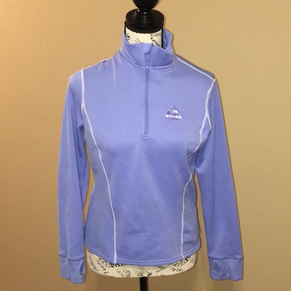 Pullover is in good preowned condition. Color is a little lilac and pullover has a 3/4 zipper. It has a little wear on bottom right sleeve- see pic. It’s very warm and although it’s a size 40 medium it may feel a little small if you layer it. Otherwise is a favorite go to on those cool days.