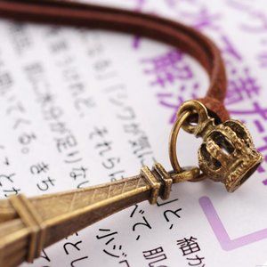 Eiffel Tower pendant on a leather necklace measuring 34" long. The Pendant also has a crown in the same metal tone and the whole look is finished off with a wooden bead. Tower measures 1 1/2" tall by 3/4" wide. Crown is about 1/3".